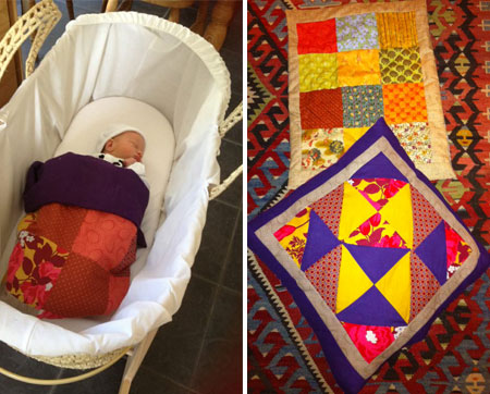 When I find the writing is not going well I like to get into (v. small) patchwork projects. It’s such a visual medium and making choices about colours and textures really helps me clear my head if I’m in a bit of a prose-hole. Here are my very amateur efforts so far. (I made everything aside from the baby!)